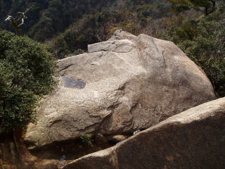 | 破断岩 おそらく阪神大震災で破断した岩と思われる。 これは貴重なサンプルであり 研究対象である。 場所:立て烏帽子の南の下に隣接した岩 |