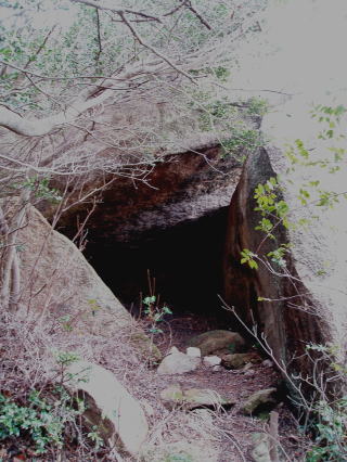 雨宿りに最適 4〜5人程度なら収容可能岩小屋の入口、 奥行きは3m程度 |