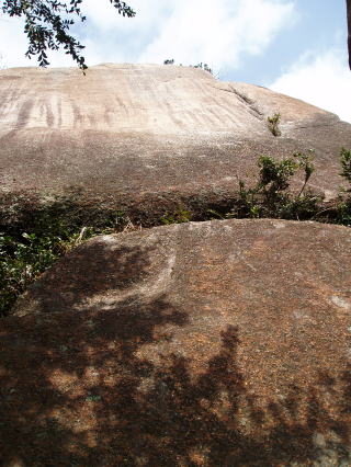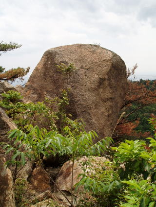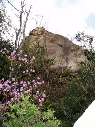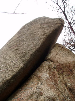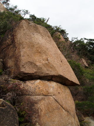 猫岩(下の岩)から見上げた サンデーモーニング岩 まるで鏡餅のようだ。 |