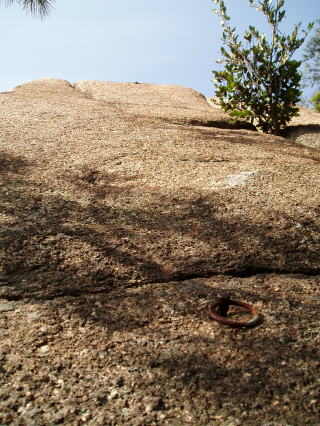 | ミニルーフ 場所:テーブルロックの下 ルート:ここから、コーンフレークスラブまでもと来た道を引き返し、右側に通っている岩梯子の一般登山道に出る。 |