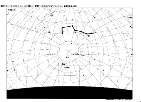 3 星空の観測地は、汝陰侯墓のある中国阜陽(ふよう)市 北緯32.9°東経115.8°とする。