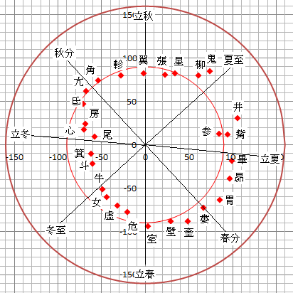 二十八宿の表示は二十八宿円盤の天文データをもとに作成された。