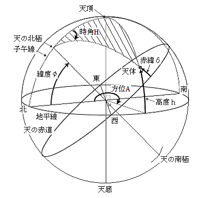 赤経の増加分は時角の減少、赤経の減少分は時角の増大に作用する。
