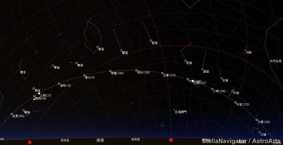 太陽は黄道上を一年で回るので、太陽の位置は暦となる。