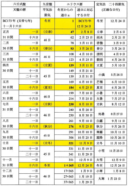(1)六壬式盤の天盤の暦は太乙九宮占盤の冬至起算の平気法による節切りを踏襲したもので、