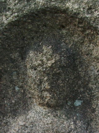 | 石仏の基部はコンクリートに埋め込まれている。 | 石仏の頭部 | |