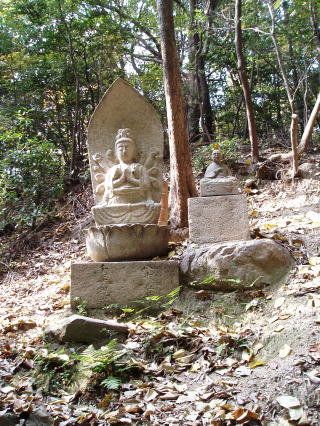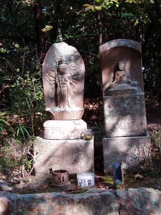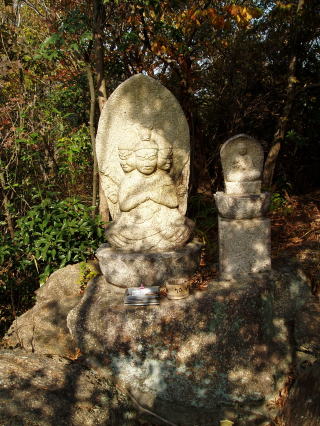 | 第八十五番 八栗寺 (やくりじ) 弘法大師は、唐留学の成就を祈願してこの地に八個の焼栗を埋められた。帰朝後、再びこの地を訪れた大師は、栗の木が八本とも茂っているのを見て、寺の名を八栗寺とした。 本尊:聖観世音菩薩 詠歌 ぼんのうを胸の智火にて八栗をば 修行者ならでたれか知るべき 石仏の調査 本尊は聖観世音菩薩であるが、石仏は明らかに千手観世音菩薩である。 |