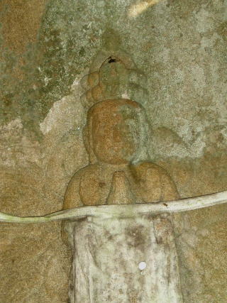 | 岩窟の中に安置された仏様 | 石仏:千手観世音菩薩 | |
