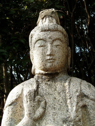 | 石仏:十一面観世音菩薩 俯きかげんのやさしいお顔だ。 |