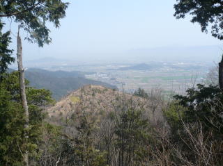 | 三角点のある繖山山頂にて | 繖山山頂から北向き観音ルートを望む |