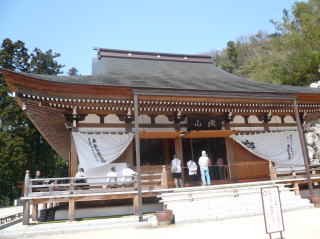 | 桑実寺の石段と山門 | 檜皮葺が美しいの本堂 |
