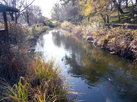 尼崎市常吉2丁目の公園の中にある源太郎橋の下に、武庫井の水路が四つに分割されるところがある。(図13)