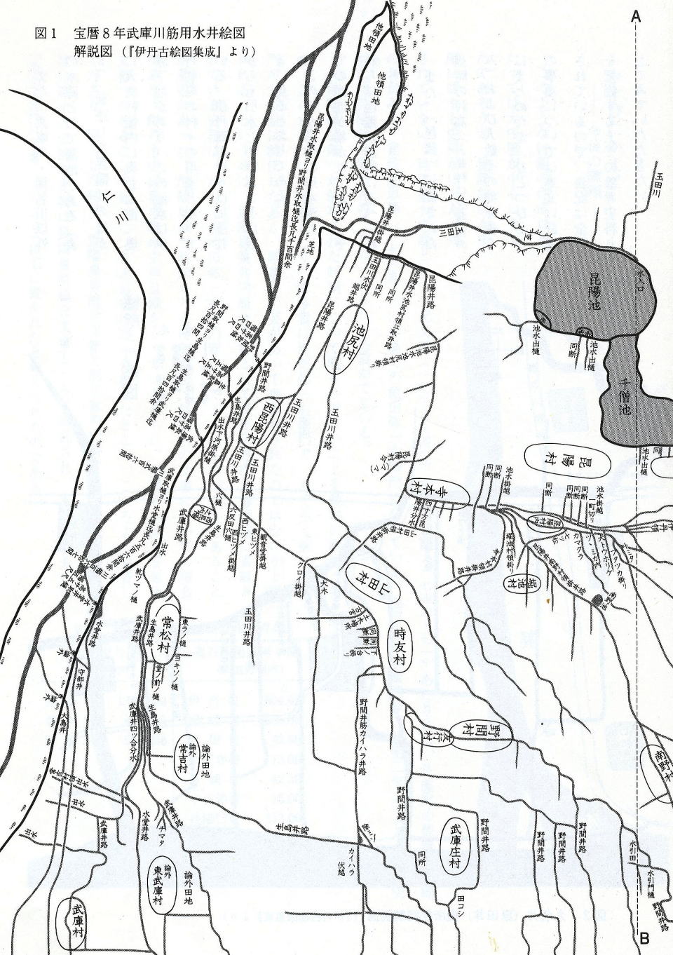 昆陽組邑鑑と同年代の宝暦8年(1758)武庫川筋用水井絵図の検討から推定した。
