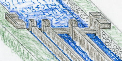 図3は、この洽木を水路に取り付けたは四つ洽の想像図である。