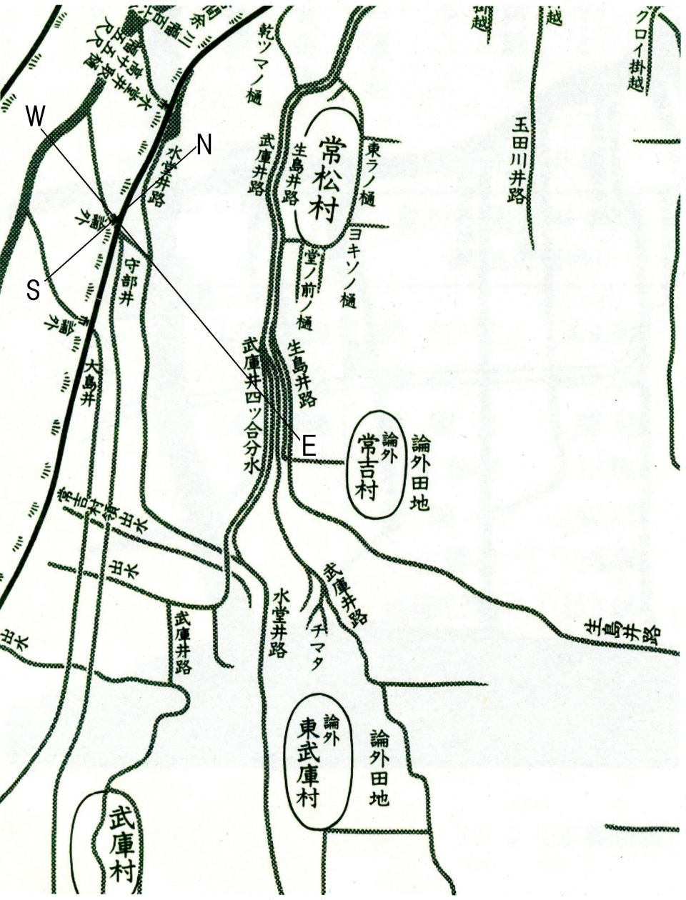 常吉村は武庫井組の井親(文献6@)であることから、水は当然少なくとも1カ所は武庫井路から受けるはずである。