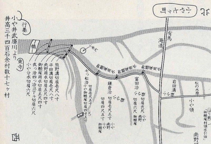 弐つ洽⇒四つ洽⇒七松洽⇒鎌倉洽⇒富田洽に至る切りかた(水の分け方)の寸法も同一で、邑鑑の付図の感がある。