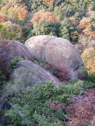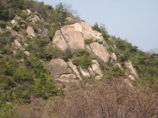 | 東面、岩が密集している。 | 南面、まるで要塞のようだ。この面が登攀に使われているようである。 | |