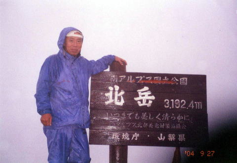 朝から小雨が降り続いている。しかし、風がないので案外暖かい。6:25肩ノ小屋を出発し北岳を目指す。日本第二の高峰である北岳は、やはり人気の山である。こんな天気にもかかわらず人がけっこう登ってくる。北岳のピストン組がほとんどらしい。ここで、記念写真をとってもらい間ノ岳に向かう。