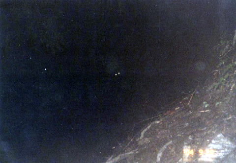 帰宅して写真をプリントしたところ、露出不足のため、暗闇にカモシカの二つの眼だけが光っていた。(下の写真)