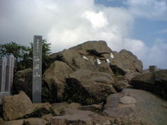 女体山山頂にある石碑と磐座