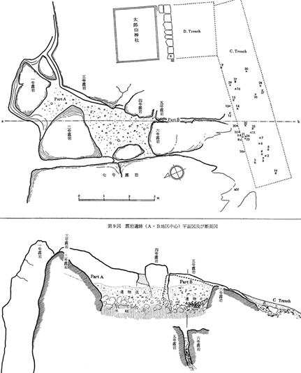 なお第二回調査は、石の南部が掘られ敷か所に小グループの土器・石製品の群在が認められ、このこぶ石を中心にたびたび祭りの行なわれたことを推測する資料が得られている。