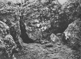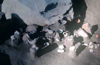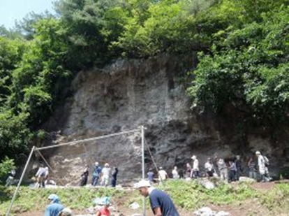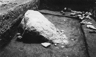 この岩の前から、多数の遺物が出土した。