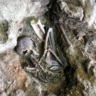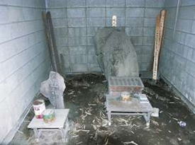 磐座Aの南面 土師器細片・古銭片(宋銭)・ 鉄釘片