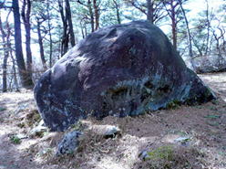 峠の頂上付近、笛吹岩などの巨岩(磐座)