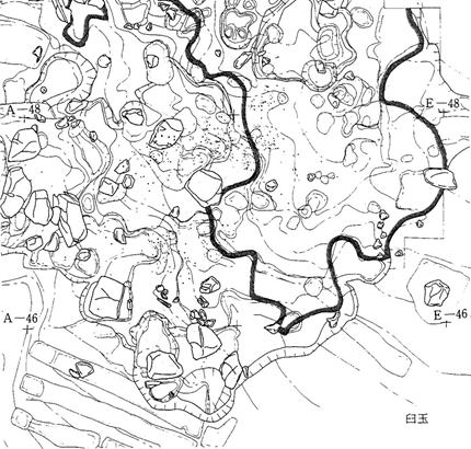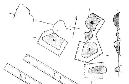 露岩遺跡の断面線→ |