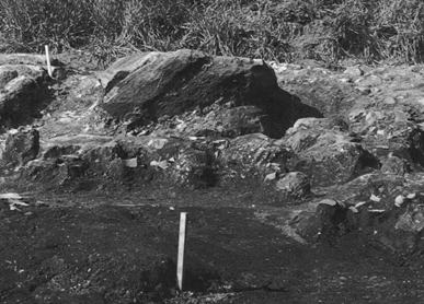 この2つの岩は、上面に若干の凹凸はあるが、平らな面を有している。これらの岩の上部は地表に露呈し、下部は地表面より20~40cmの深さで、遺物の包含している黒褐色土中に埋没していた。