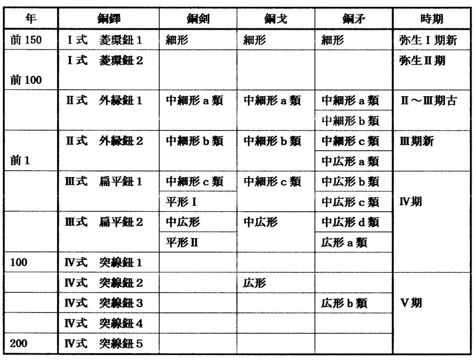 表1-5 銅矛・銅剣・銅鐸の移り変わり
