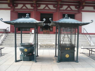 四天王寺の境内の中心なす金堂の前に鎮座する。