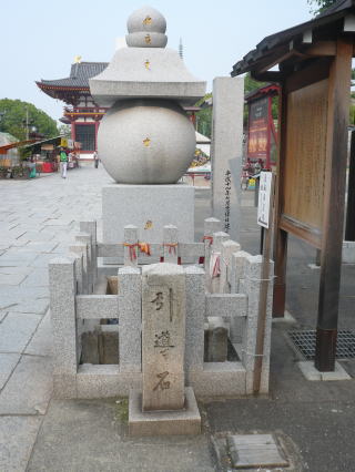 引導石は、この鳥居のかたわらに『太子の引導鐘』と共にある。古記録によれば、葬送の時、しばらく棺を鳥居の前に置き、太子の引導鐘を三打すれば、太子自らこの引導石の上に影向され極楽浄土に導かれるとある。