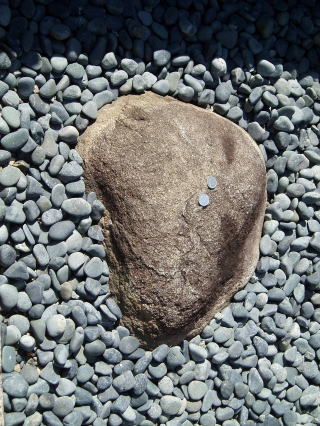 | 図9 石の鳥居近くにある引導石 | 図10 玉砂利の中から石の頭がのぞく |