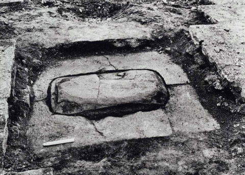 | 図5 埋納された転法輪石(側石をとったところ)(文化財保護委員会1967) |