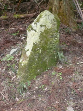 まずは、八重練(やえねり)の集落を目指す。そこから清冽な流れの芹川の左岸にそって林道を歩むと、右手に山に登る分岐があり石の道しるべがある。道しるべは苔むしているが、「是より杉坂 十八丁 みのいせ道」と読める。1丁は109mなので、2kmの道のりである。その道をしばらく進むと、左手に山に登るかなり急な道がある。それが杉坂の実質的な取り付き点で「御神木」の表札がかかっている。杉坂は、関ヶ原の戦いに敗れた島津義弘が薩摩に逃げ帰った時の道として名高い。
