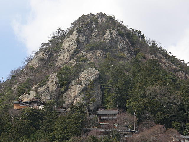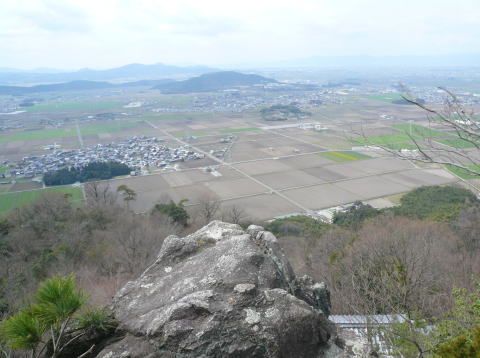 | 御堂の前にある兜岩の岩頭から琵琶湖方面を望む | ||