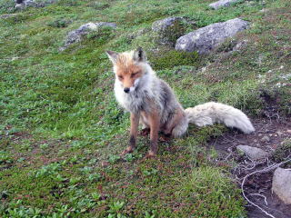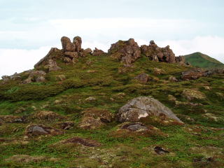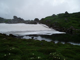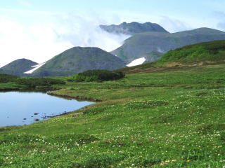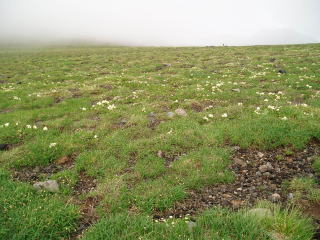 | ガスに包まれた旭岳山頂にて | 裏旭キャンプ場の平原 |