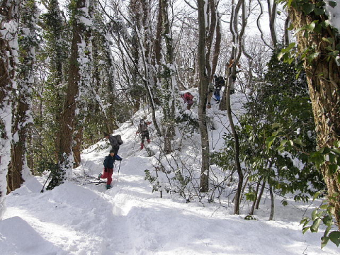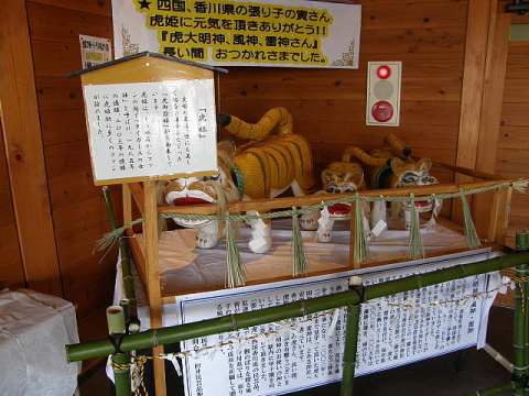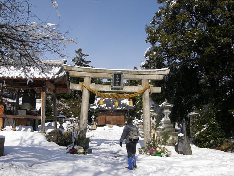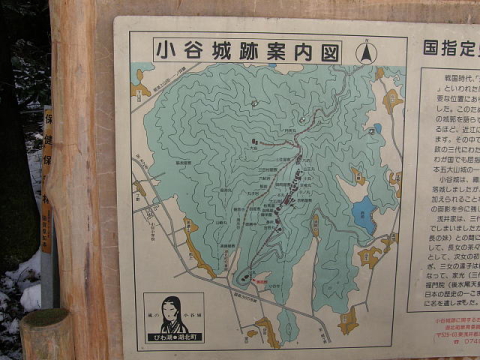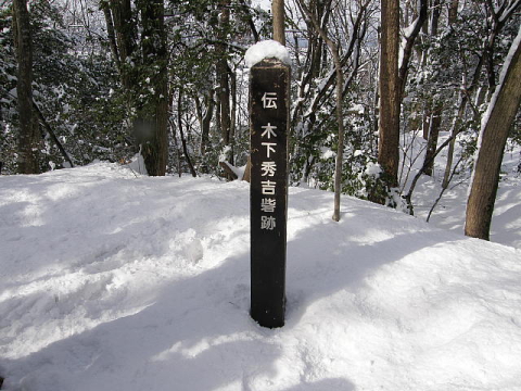 写真の如く干支名の付いた虎姫駅は虎御前姫からの由来で構内に張り子の寅が3匹飾ってあり、駅の外にも虎明神もあり今年は虎尽くめの駅である。矢合神社からは雪道で程なく浅井長政を攻略するための織田信長の陣地跡に着く。すぐの砦跡が山頂になっている。小谷山に向う下山道には木下秀吉とか柴田勝家の砦跡もあり、北側の登山口に降りる。北陸自動車道をくぐり途中で昼食後、小谷城跡登山口からは積雪の車道を進み途中から山道の大手道に入る。途中番所、馬洗池を過ぎると本丸跡に到着。そこからは頂上の大嶽(おおずく)まで雪が無くても1時間を要し時間も無いので登山口まで引き返し、河毛駅から大阪に戻る。