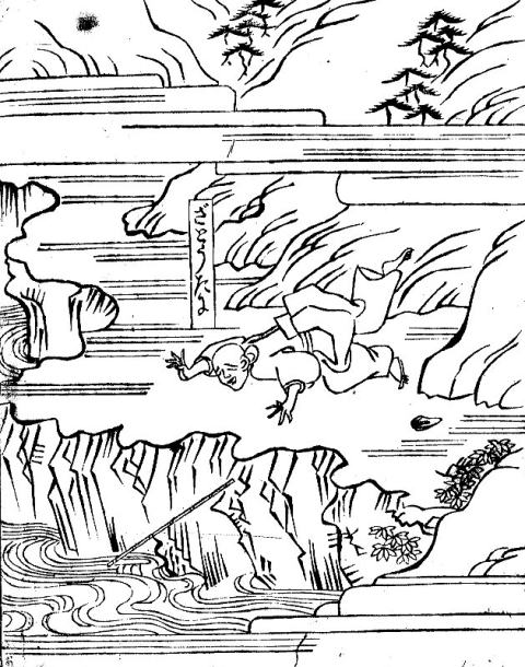 蓬莱峡 座頭谷の伝説 生瀬から三田街道と分れ、琴鳴山の南を西に太多田川沿いに有馬街道がある。 昔この道は街道といっても川の瀬づたい道で、有馬入湯者や旅人は、 その流れを右に左に飛びかいながら往来した。 そのためこの道を「四十八ケ瀬」とか、「四十八飛び」などと称し、 瀬づたいに飛びかうときすべったり、ころんだりしたので、 この川のことを「うたたび(転び)川」といっていたことから太多田川と転訛したものといわれている。 この付近がこの街道の最大の難所で、その有様を記した文献が数多くあり、 奈良時代の昔から、万葉歌人や幾多の有名人たちにとって、 この道は忘れることのできない思い出の道であったのであろう。 この四十八ケ瀬を過ぎると、正面に風化した特異な奇峰が群がりそびえている。 この付近一帯を蓬莱峡といい、この谷が座頭谷である。(文献1) ![]() 江戸時代の『有馬湯山記』に描かれた蓬莱峡の風景(文献2) 画面中央を流れる川は太多田川。右下は武庫川と思われる。 座頭谷という名は、江戸時代の名所案内記などによると、 むかし一人の座頭が有馬に入湯しようと四十八ケ瀬を通り、 ここから右に道をとって船坂へ行くのを、誤って左の谷に迷い込み、 盲目の悲しさでついに出ることができず、この谷で死んでしまったので、 その霊を慰める意味で座頭谷という名がついたと記されている。(文献1) ![]() 座頭谷の遭難の挿絵 『迎湯有馬名所鑑』より(文献3) 座頭谷の遭難 『山口村誌』(文献1)より 昔京の都に一人の座頭が住んでいた。 年来の持病に難渋していたが、ある時有馬の湯が効能あると聞いて早速旅の支度にとりかかった。 近親や近所の人々は、彼の道中を気づかって引きとめたが、彼はきかず人目を盗むようにして旅立った。 その日はとある宿で一夜を明かし、翌日生瀬の宿についた。 そして生瀬の急な渡しも無事渡り、いよいよ難渋な有馬街道へとさしかかった。 日はまだ高いので彼はゆうゆうと杖を頼りに山路をたどっていった。 しかし太多田川の流れを五六度渡ったと思う頃、ふとしたことから道を誤り左手の谷間に迷い込んでしまった。 いくら行っても道らしい道はない。 やむなく通りすがりの旅人でもきたら尋ねようと、傍らの岩に腰をおろし、しばらく休んでいたが、 足下を流れる谷川のせせらぎと、木の間をもれてくる猿のなき声とが遠く聞えるばかりで、 人声らしいものは更に聞えてこない。 つるべ落しの秋の日は、やがて山の端に近づいてきた。 このままじっとして来ぬ人を待っていても仕方がない。 座頭は勇を鼓してもう一度行ってみようと決心し、杖を頼りに谷間深く進んで行ったが結果は同じであった。 そのうちに六甲の峰々に夕闇がせまってくる。 暮れかけた秋の日は急に早くなり、晩秋の夕風がそぞろ肌にしみてきた。 淋しさと不安のあまり大声をあげて救いを求めたが、答えるものはせせらぎと、遠くにひびく山彦のみであった。 彼の不安はますばかり・・・。 ついに秋の日はとっぷり暮れ、飢と寒さが全身をおそう。 さらに持病はつのり、もはや動く力もなく、どうする気力もうせてばったりとその場に倒れた。 夜のとばりは辺の山々を包み、糸のような弦月が山の端にかかった。遠くでふくろうが鳴いている。 座頭はとうとうこの谷間に倒れたまま永久に起きなかった。 その後通りすがりの狩人が、この哀れな座頭の遺骸(なきがら)を発見したのである。 それ以来、この座頭の霊を弔うため付近の人たちはこの谷を座頭谷と呼ぶようになった。 参考文献 文献1 『山口村誌』p222~225, p235~237 西宮市役所 1973 文献2 『有馬湯山記』二十五 貝原篤信(益軒)河合章尭 栁枝軒 1716 文献3 『迎湯有馬名所鑑』(『有馬地誌集』近世文学資料類従:古板地誌編 21 p356 勉誠社 1975) (C20180707 トップページに戻る |